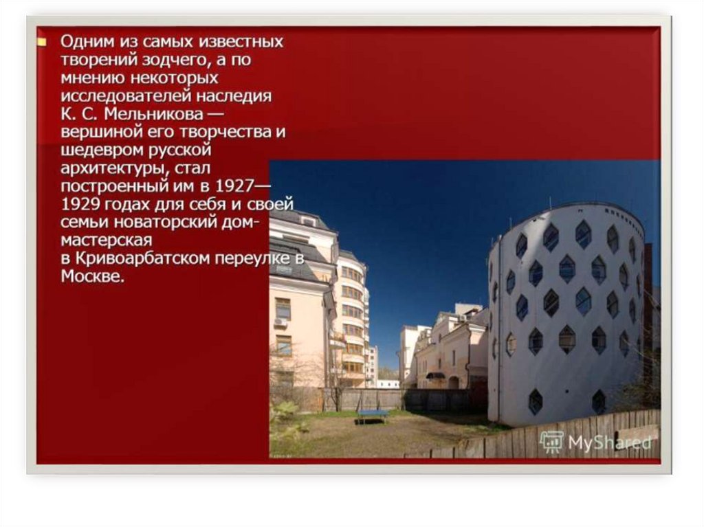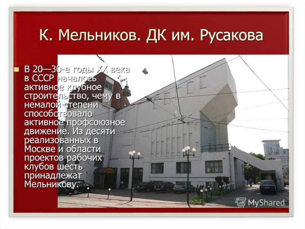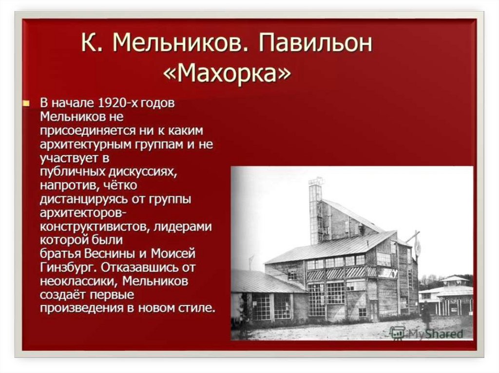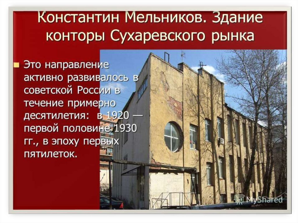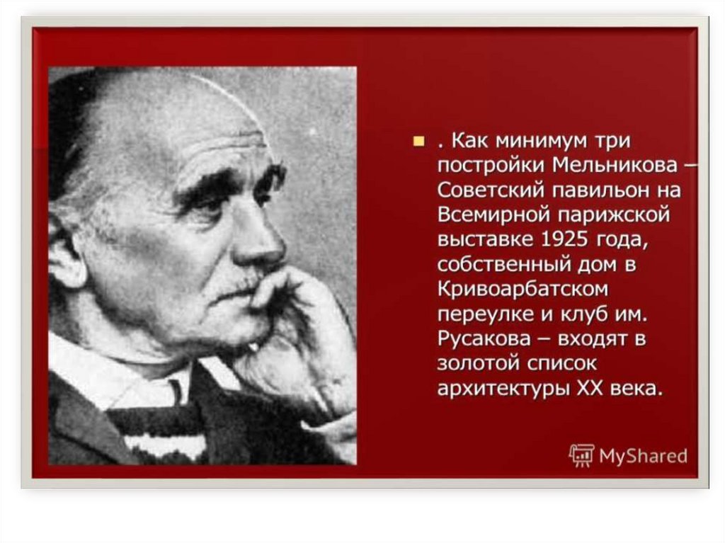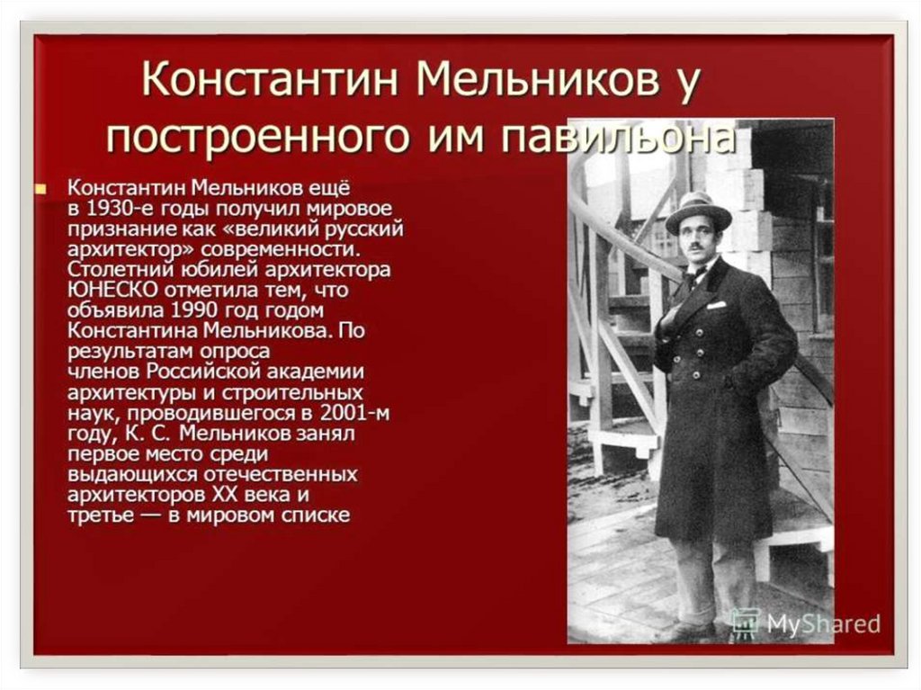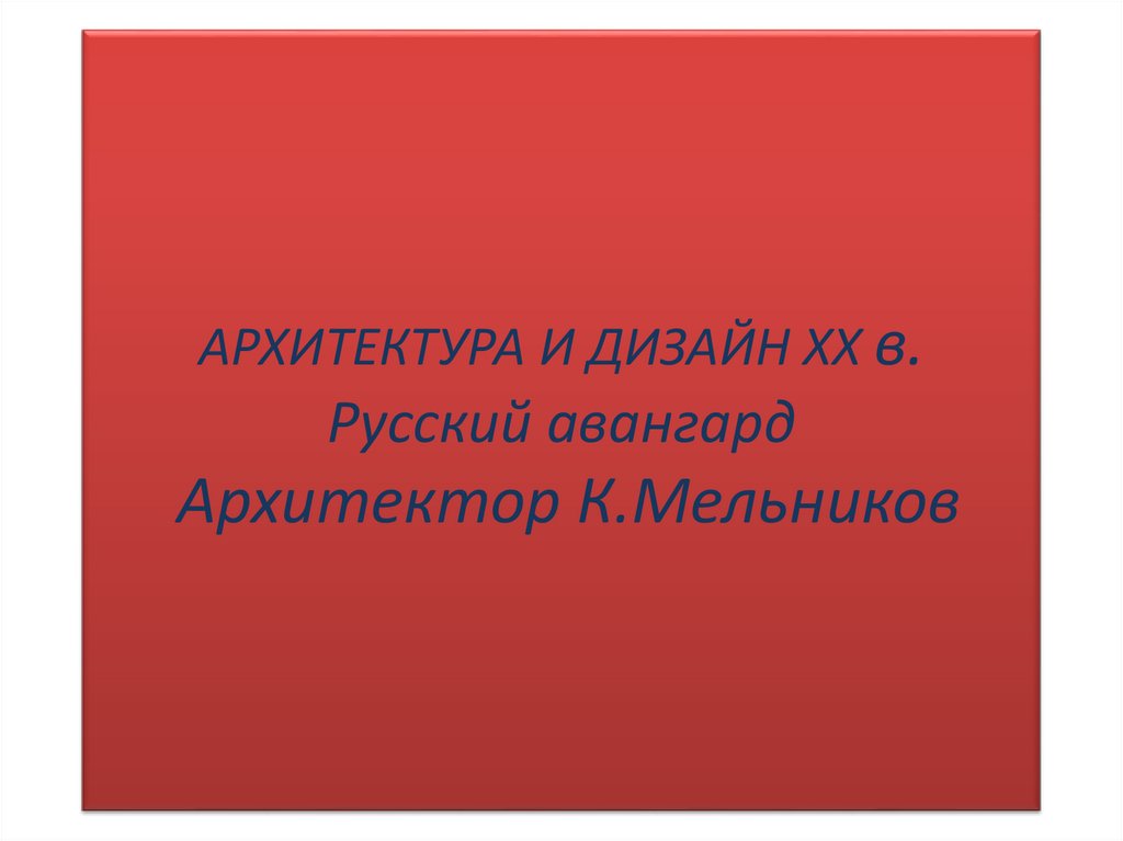Архитектура и дизайн ХХ в. Русский авангард архитектор К. Мельников