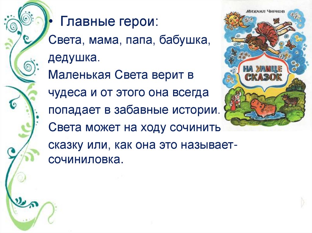 • Главные герои:Света, мама, папа, бабушка,