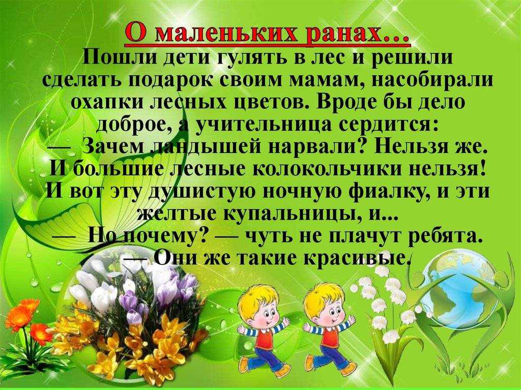 Пошли дети гулять в лес и решилисделать подарок своим мамам, насобирали