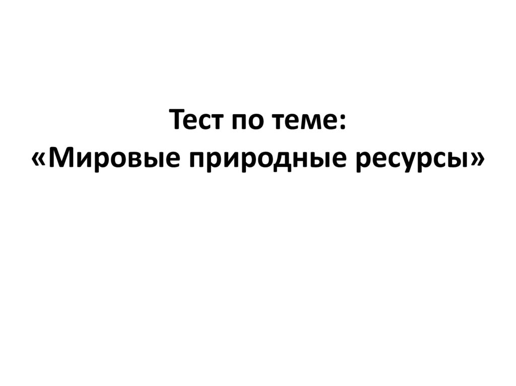 1. Тест по теме: «Мировые природные ресурсы»