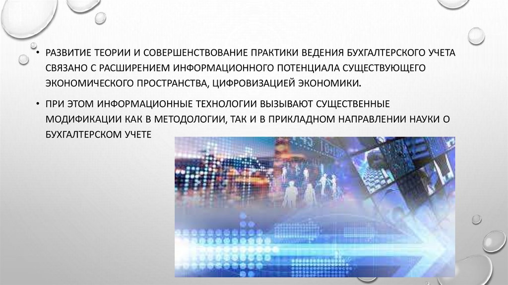 • РАЗВИТИЕ ТЕОРИИ И СОВЕРШЕНСТВОВАНИЕ ПРАКТИКИ ВЕДЕНИЯ БУХГАЛТЕРСКОГО УЧЕТАСВЯЗАНО С РАСШИРЕНИЕМ ИНФОРМАЦИОННОГО ПОТЕНЦИАЛА СУЩЕСТВУЮЩЕГО