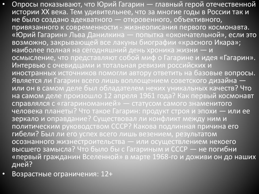 «Юрий Гагарин» Льва Данилкина — попытка «окончательной», если это