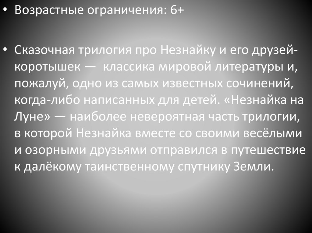 • Возрастные ограничения: 6+• Сказочная трилогия про Незнайку и его друзейкоротышек — классика мировой литературы и,
