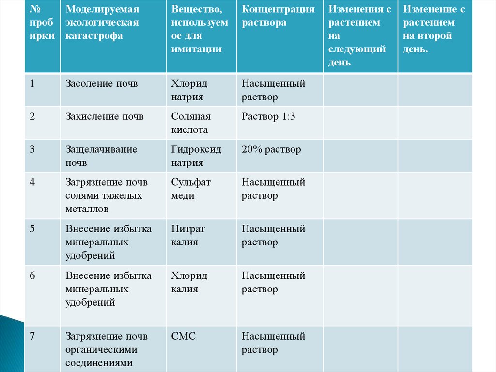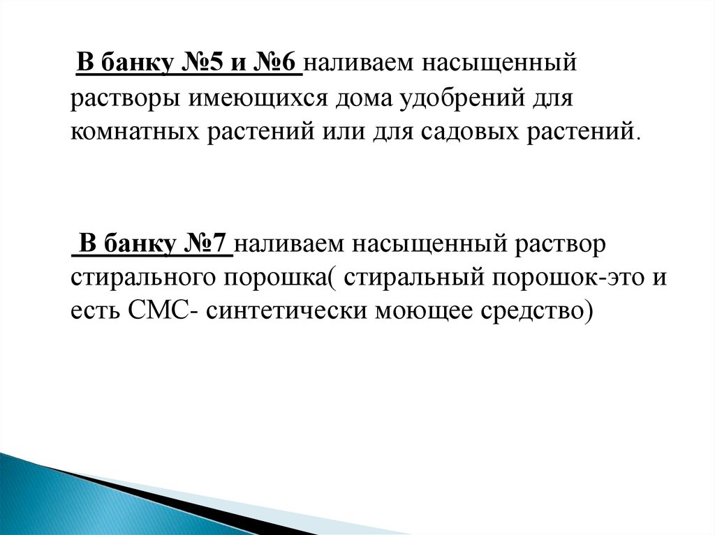 В банку №5 и №6 наливаем насыщенныйрастворы имеющихся дома удобрений для