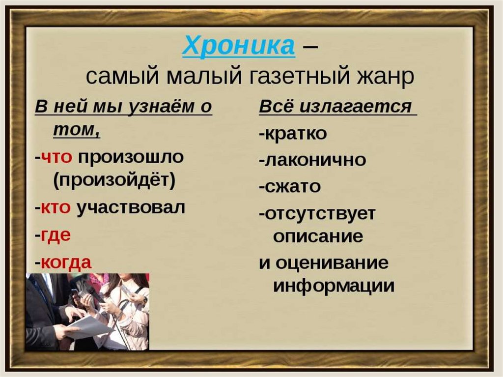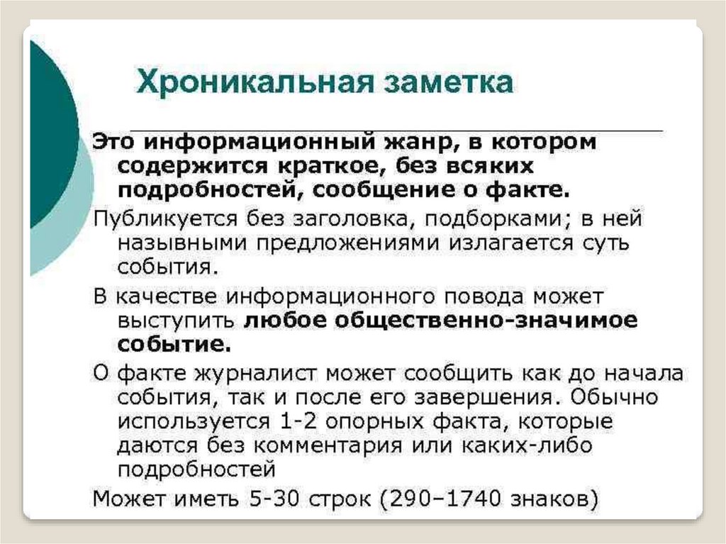 Информационные жанры. Заметка, хроника