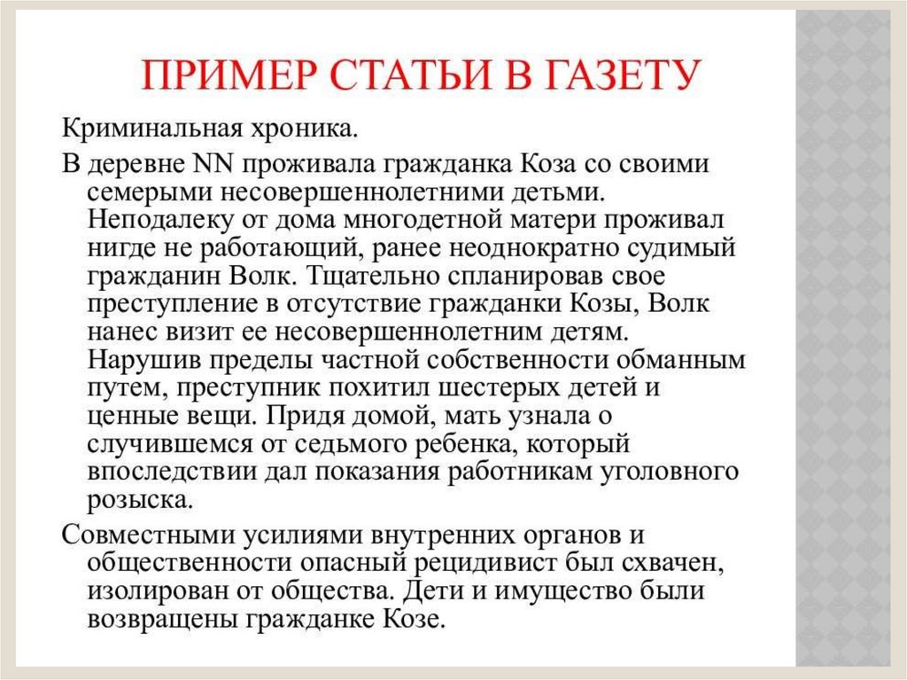 Заметка в газету как жанр журналистики