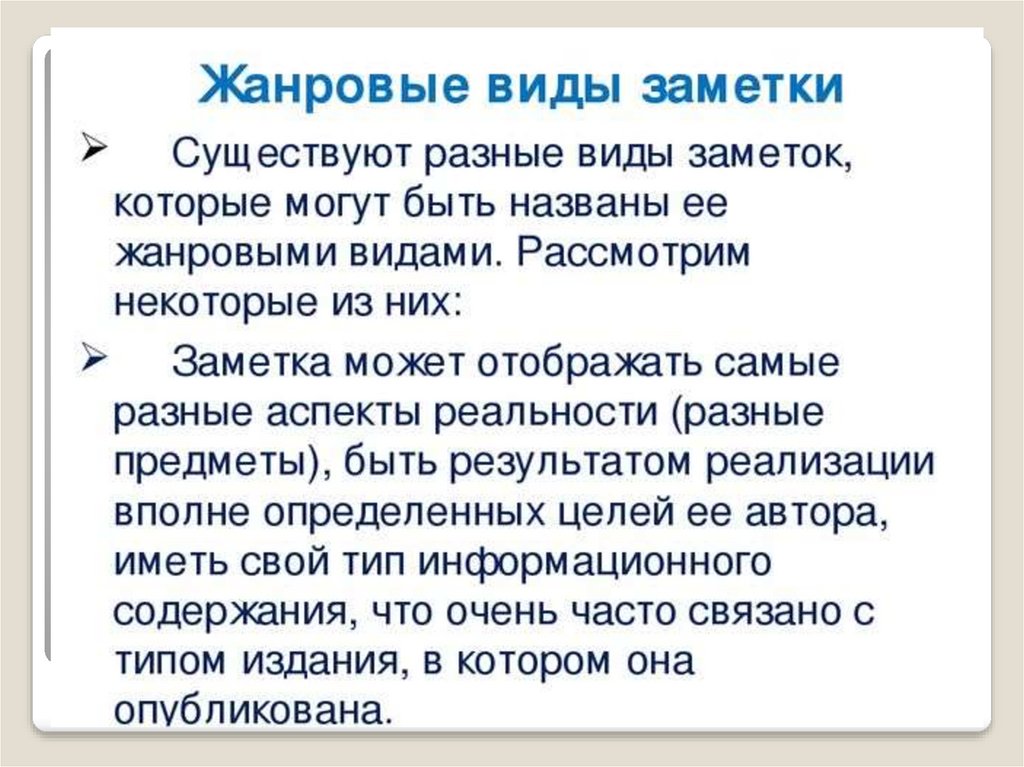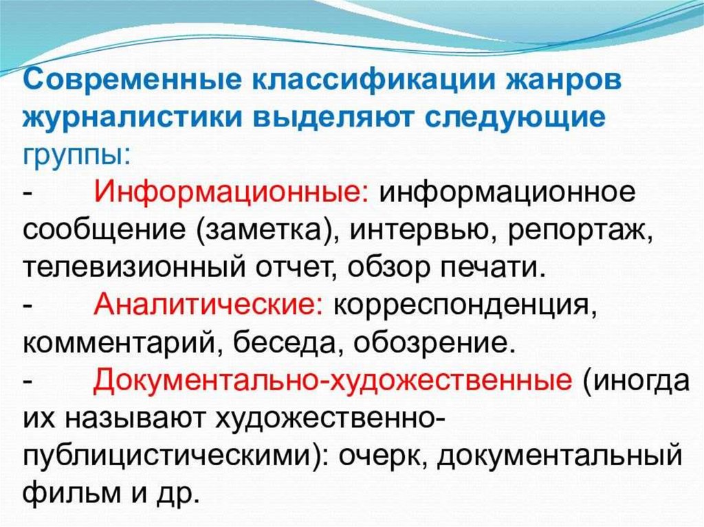 Информационные жанры. Виды информации