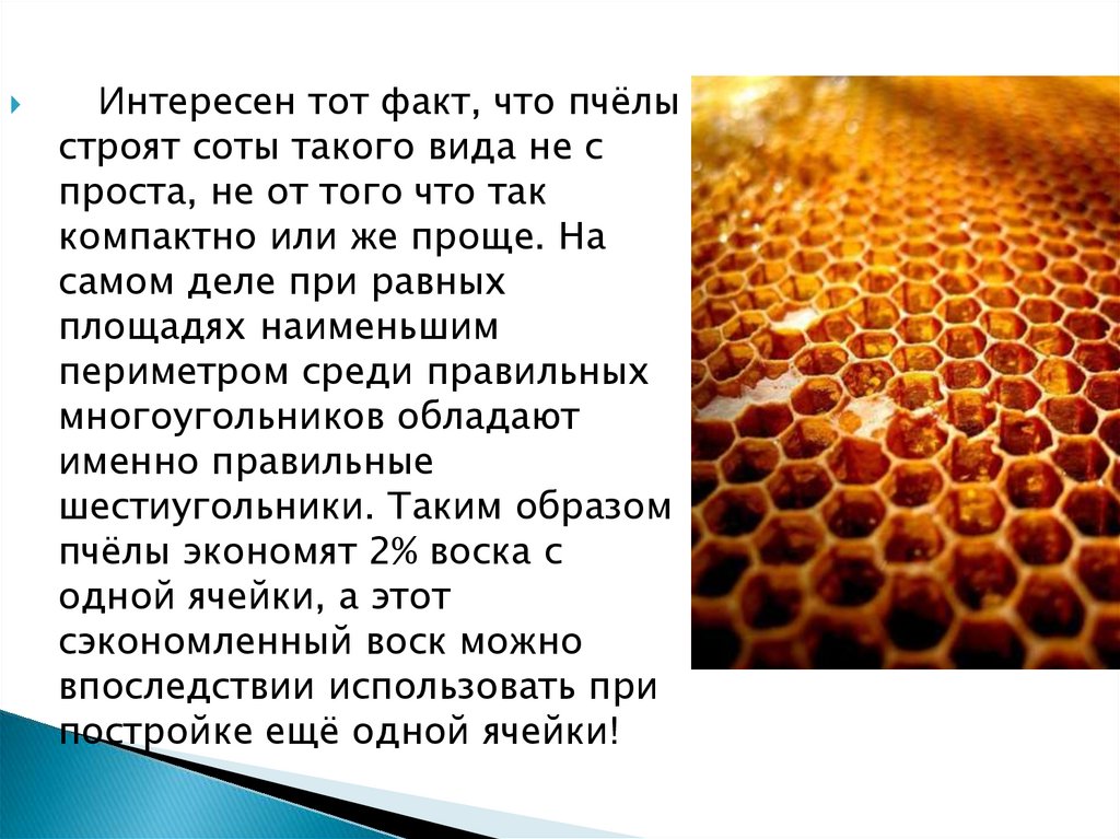 Интересен тот факт, что пчёлыстроят соты такого вида не с