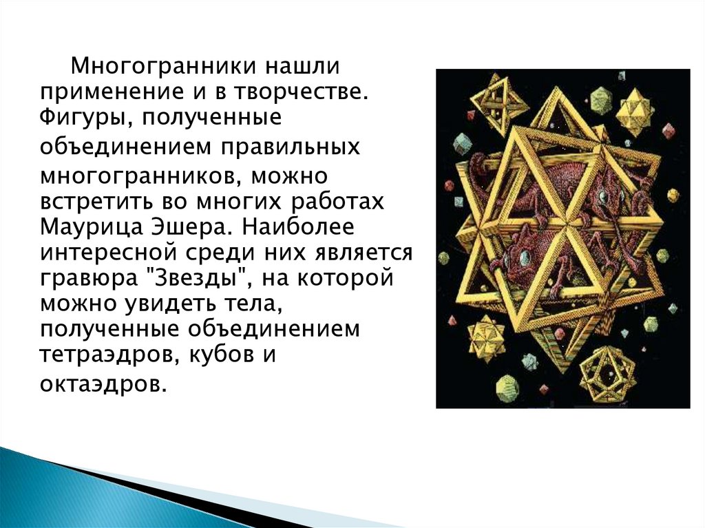 Многогранники нашлиприменение и в творчестве.
