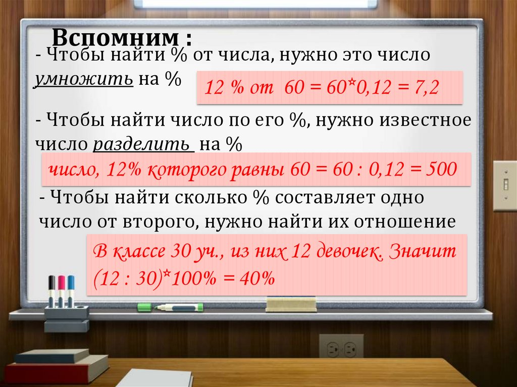 Вспомним :- Чтобы найти % от числа, нужно это число