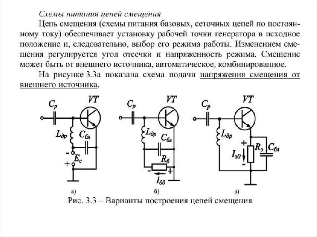 Общие принципы построения цепей питания и цепей смещения генераторов