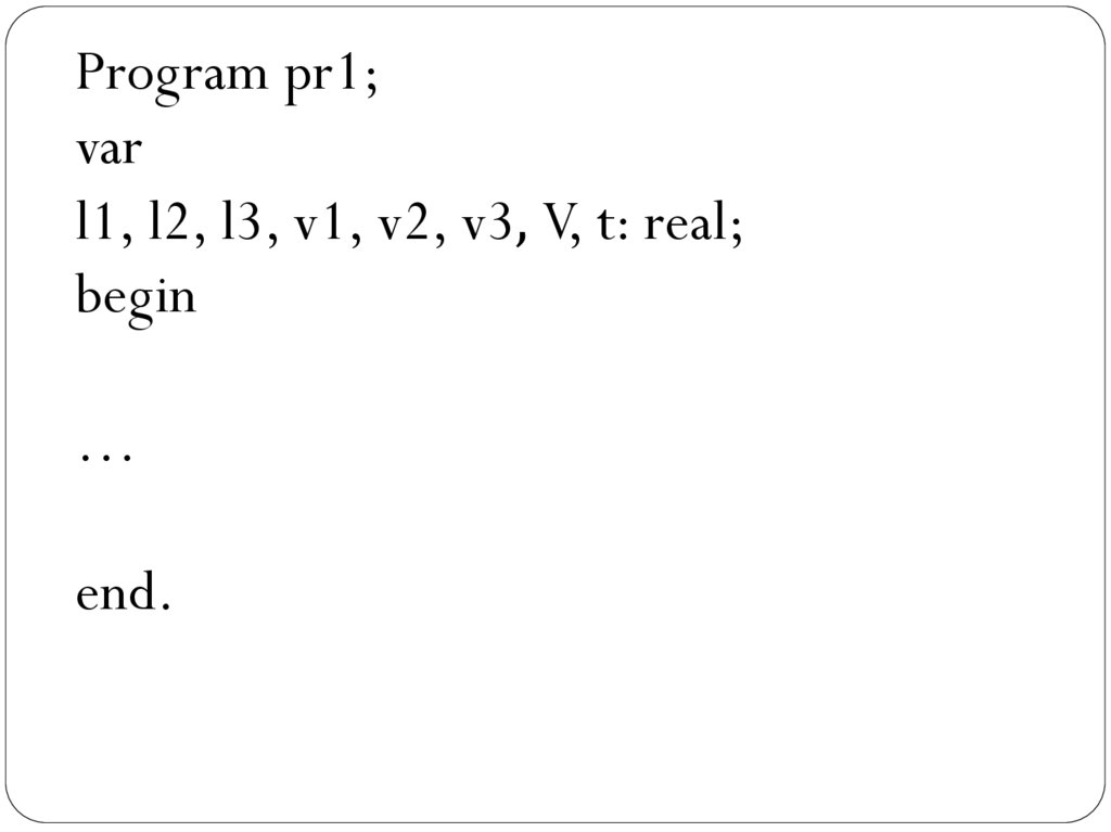 l1, l2, l3, v1, v2, v3, V, t: real;