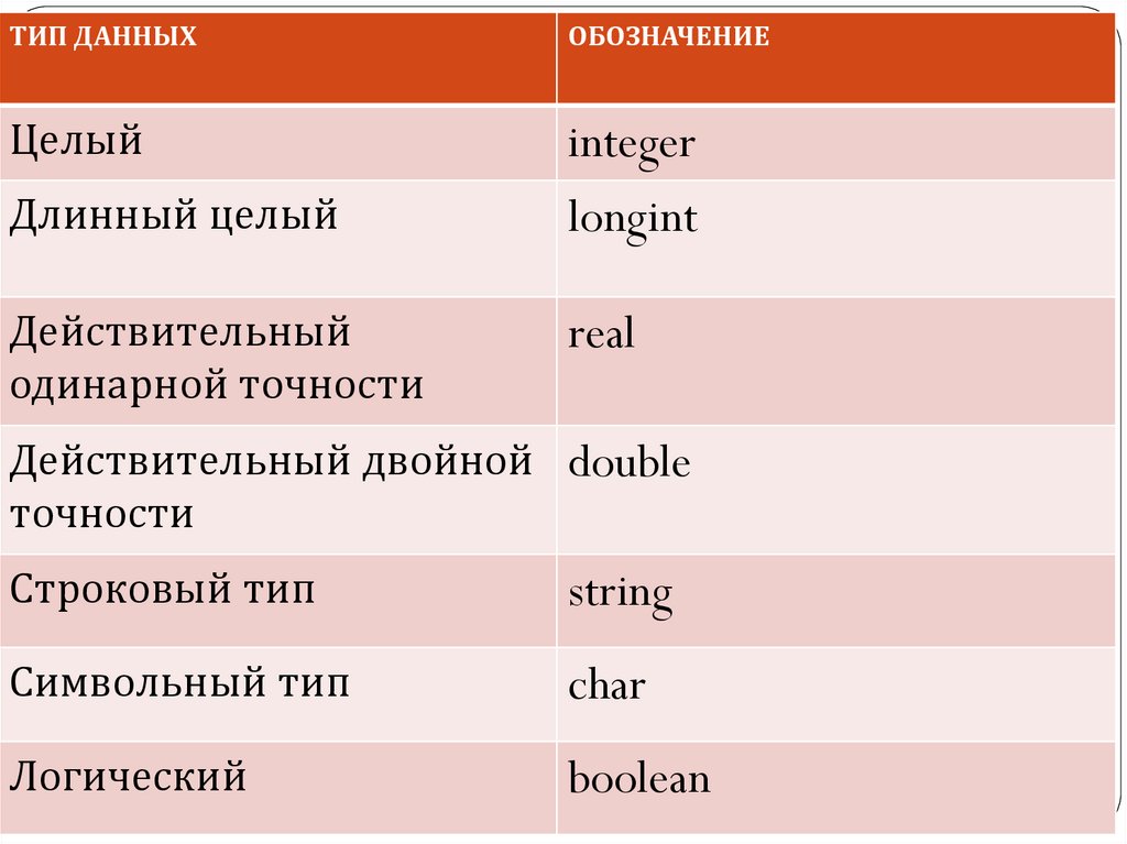 ТИП ДАННЫХОБОЗНАЧЕНИЕ