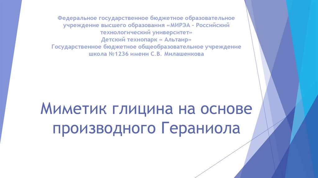Цель: синтез миметика глицина на основе производного гераниолаЗадачи: