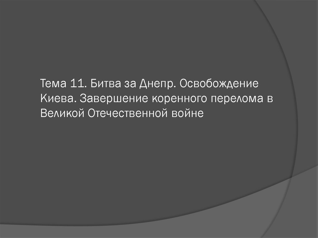 1. Тема 11. Битва за Днепр. Освобождение Киева. Завершение коренного перелома в Великой Отечественной войне