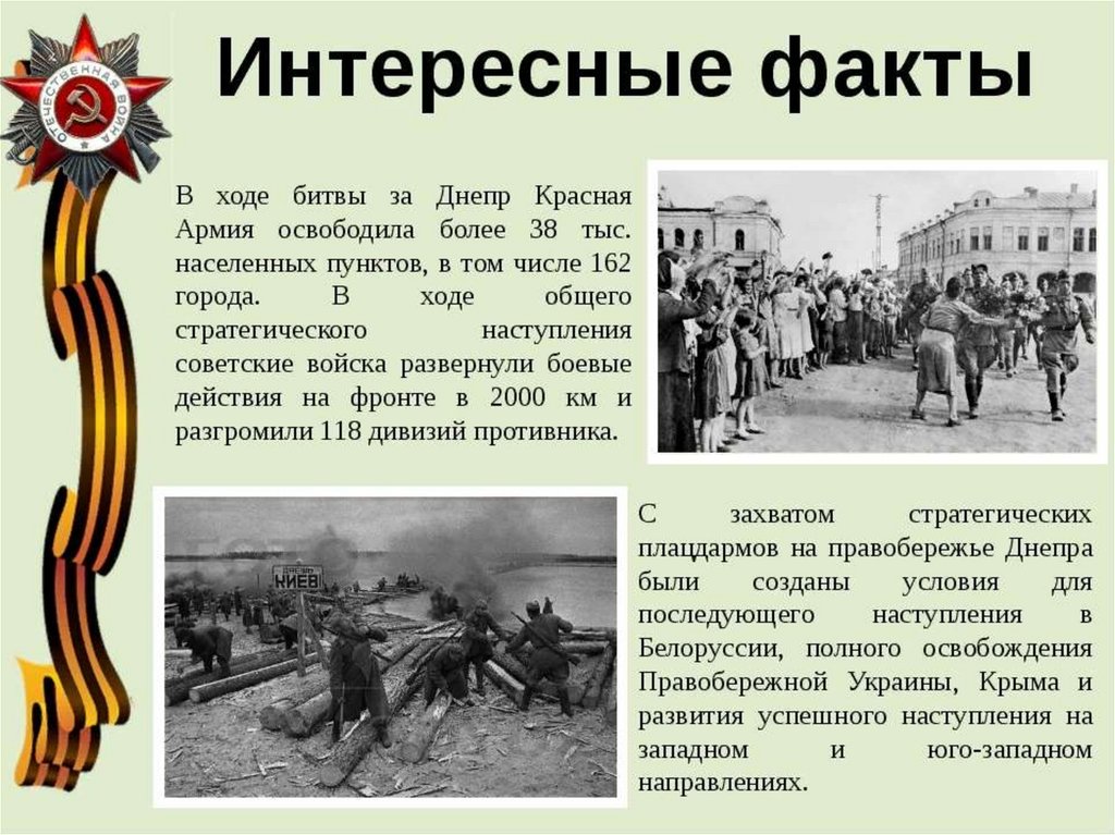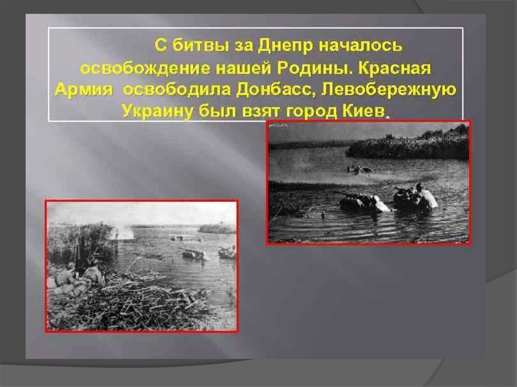 10. Домашнее задание: Ответить на вопрос. Почему события, связанные с форсированием Днепра и освобождением Киева называют