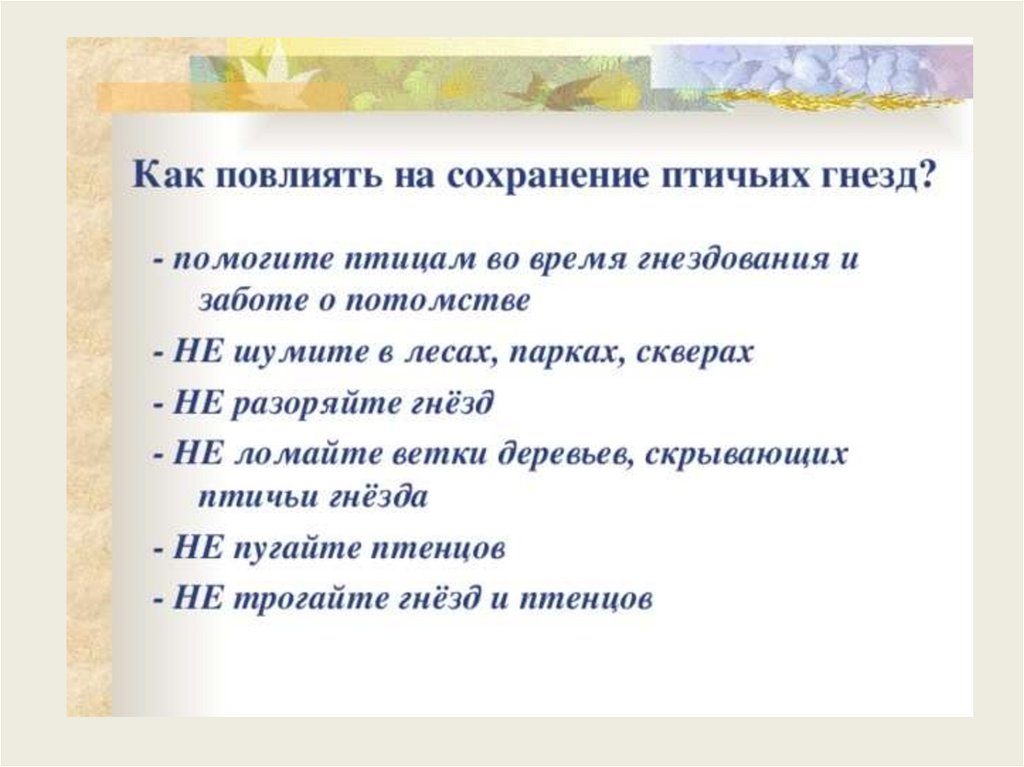 Строительство гнёзд и их охрана