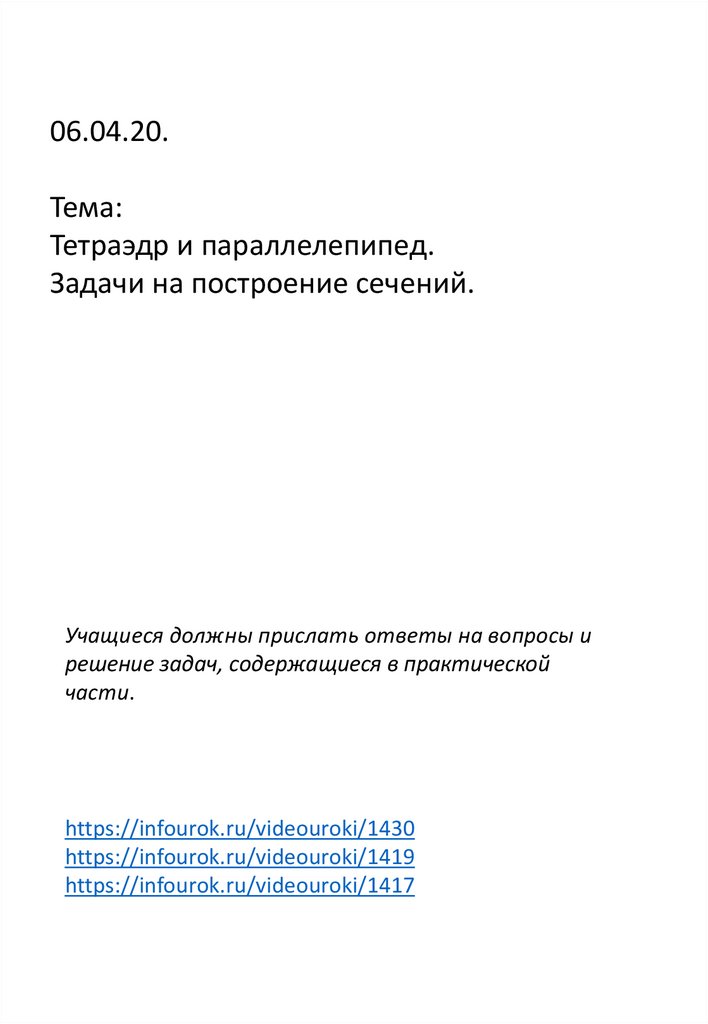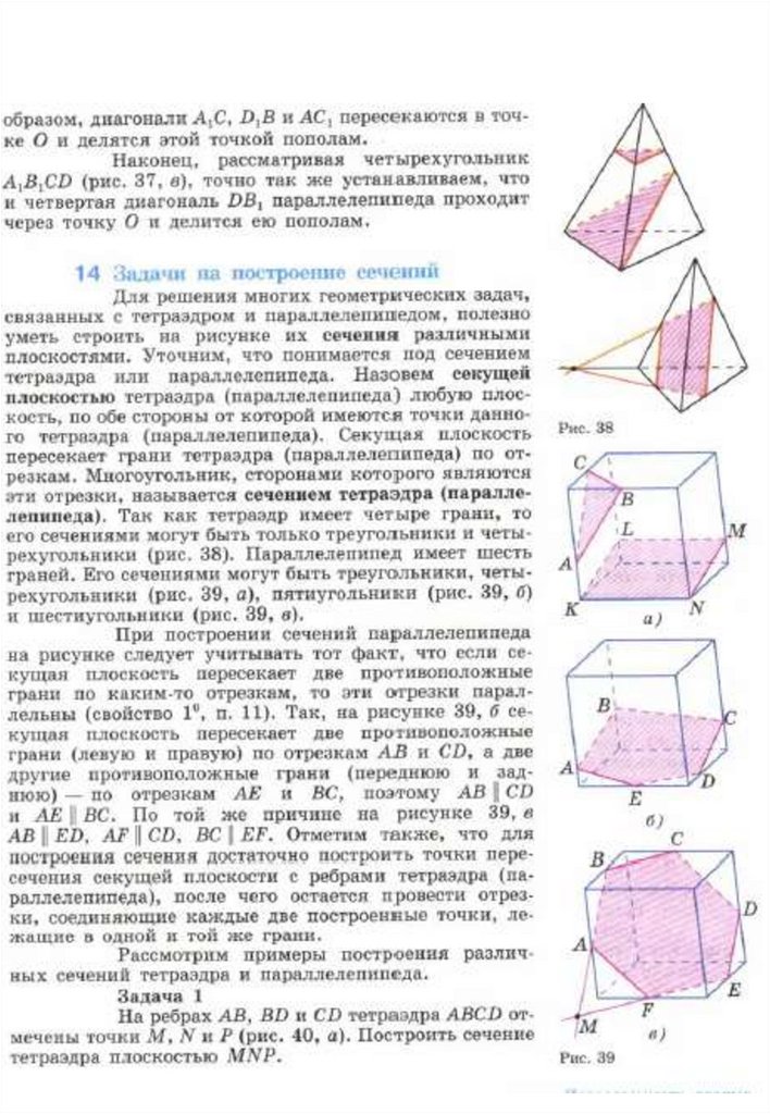 Тетраэдр и параллелепипед. Задачи на построение сечений