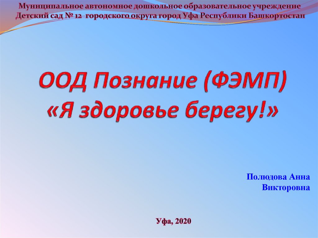 1. ООД Познание (ФЭМП) «Я здоровье берегу!»