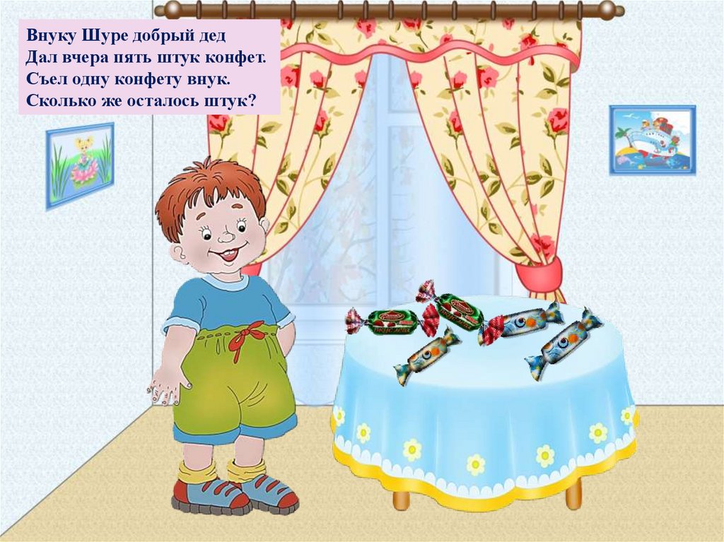 Внуку Шуре добрый дедДал вчера пять штук конфет.