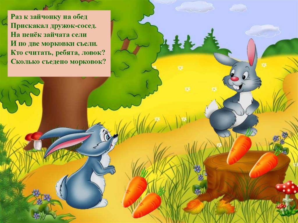 Раз к зайчонку на обедПрискакал дружок-сосед.