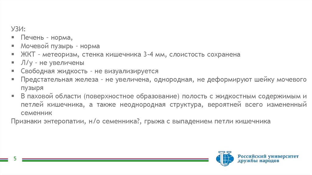 ЖКТ – метеоризм, стенка кишечника 3-4 мм, слоистость сохранена