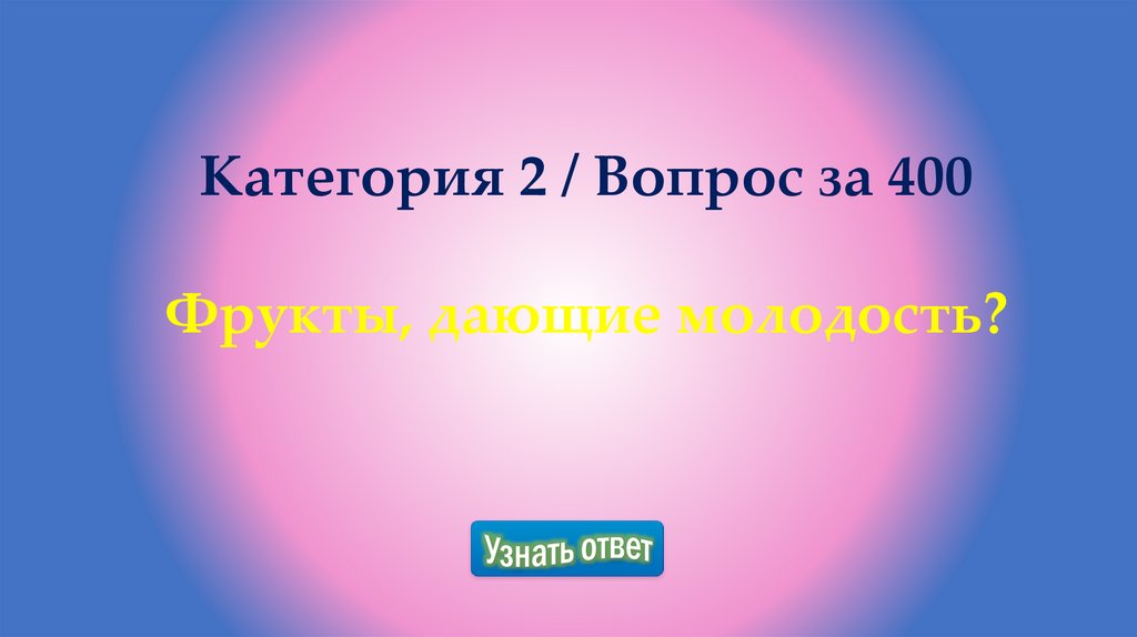 Категория 2 / Вопрос за 400Фрукты, дающие молодость?