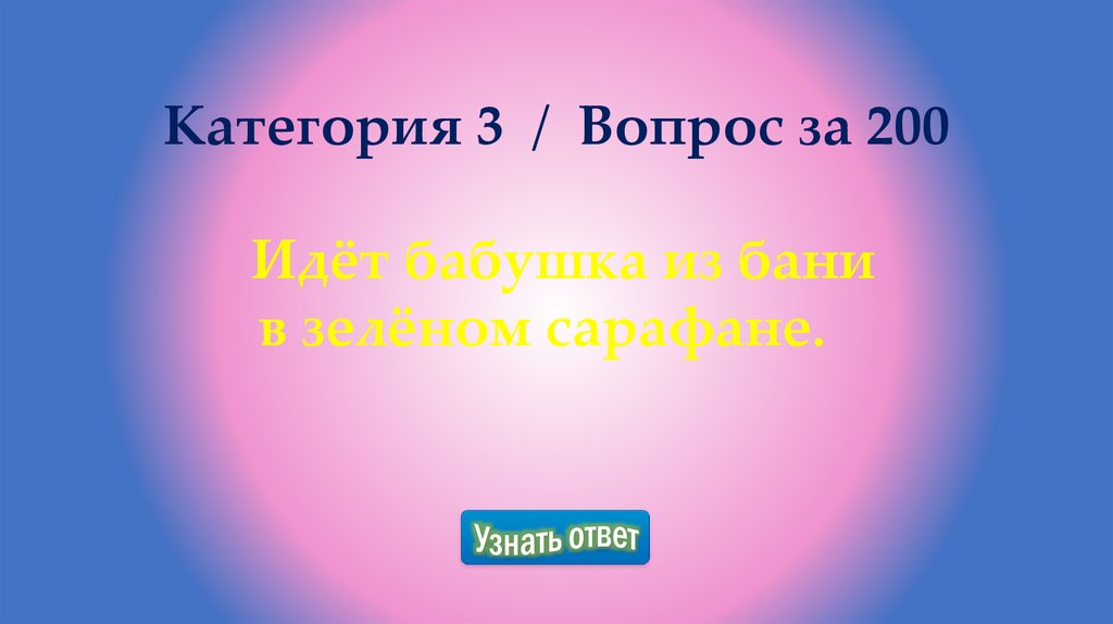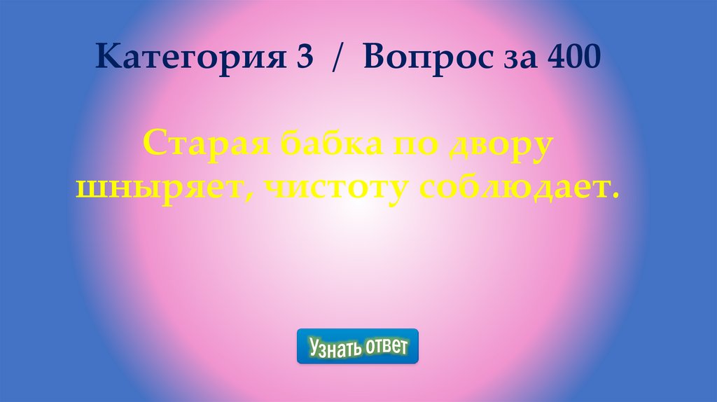 Категория 3 / Вопрос за 400Старая бабка по двору