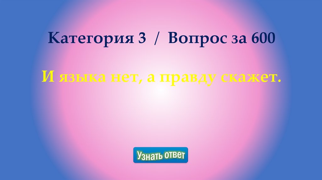 Категория 3 / Вопрос за 600И языка нет, а правду скажет.