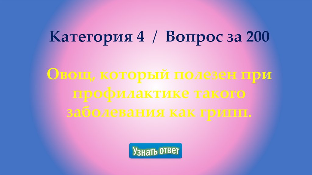Категория 4 / Вопрос за 200Овощ, который полезен при