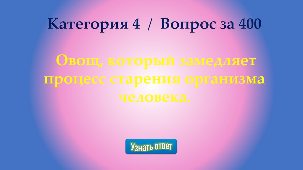 Категория 4 / Вопрос за 400Овощ, который замедляет