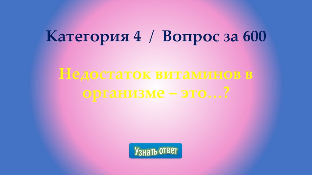 Категория 4 / Вопрос за 600Недостаток витаминов в