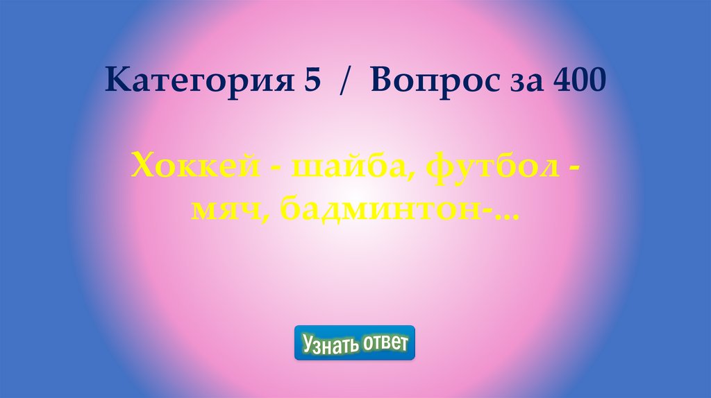 Категория 5 / Вопрос за 400Хоккей - шайба, футбол мяч, бадминтон-...