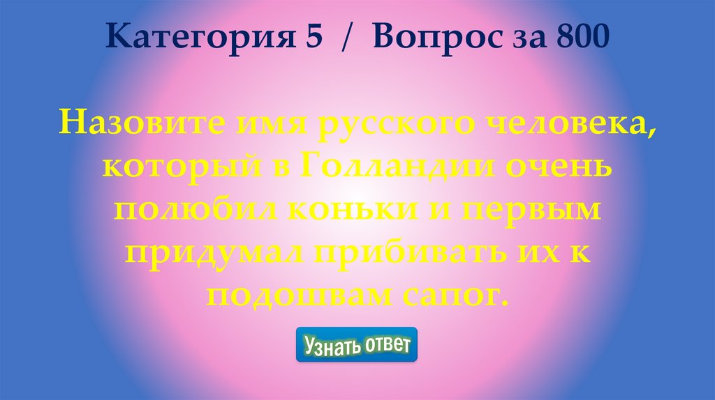 Категория 5 / Вопрос за 800Назовите имя русского человека,
