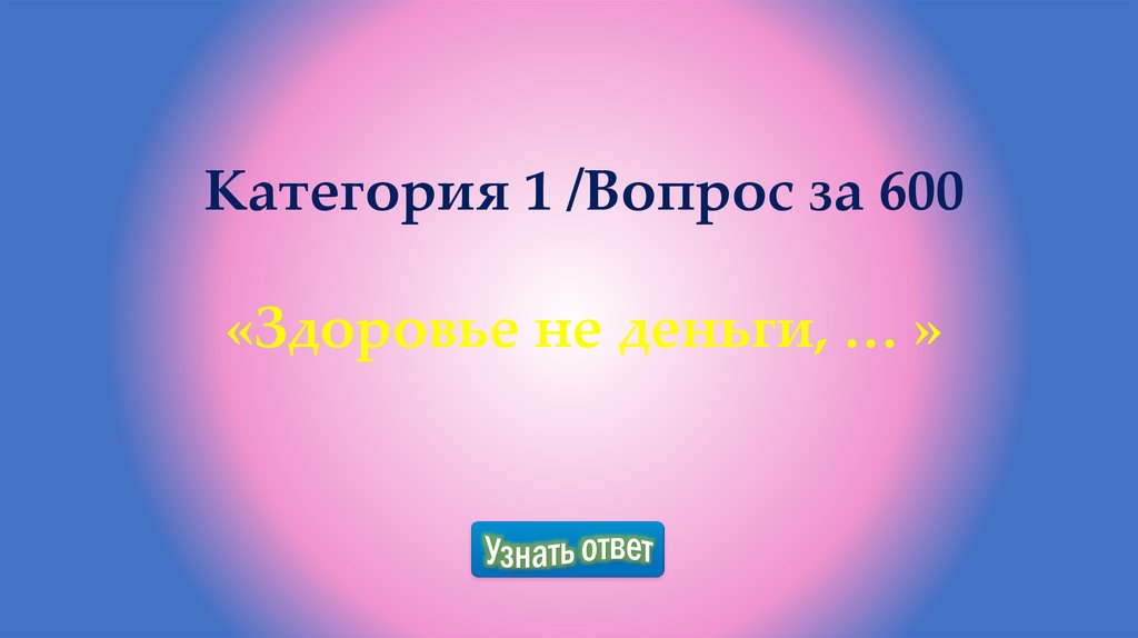 Категория 1 /Вопрос за 600«Здоровье не деньги, … »