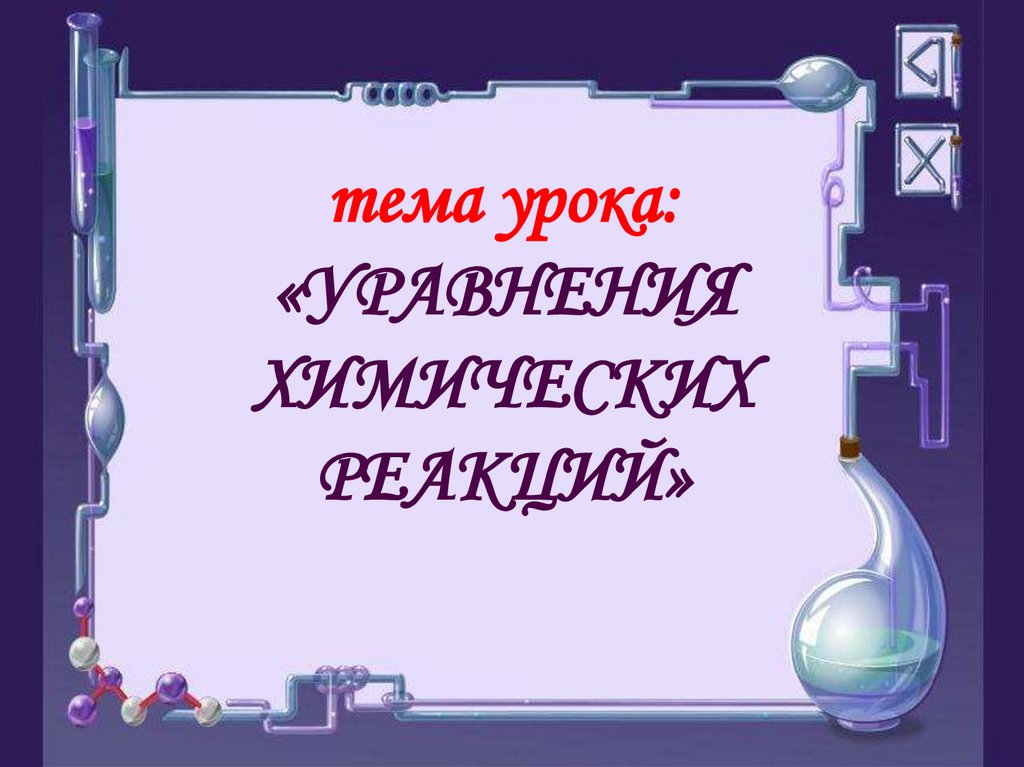 1. тема урока: «УРАВНЕНИЯ ХИМИЧЕСКИХ РЕАКЦИЙ»