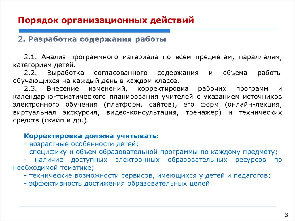 Алгоритм организации дистанционного обучения в период введения ограничительных мер