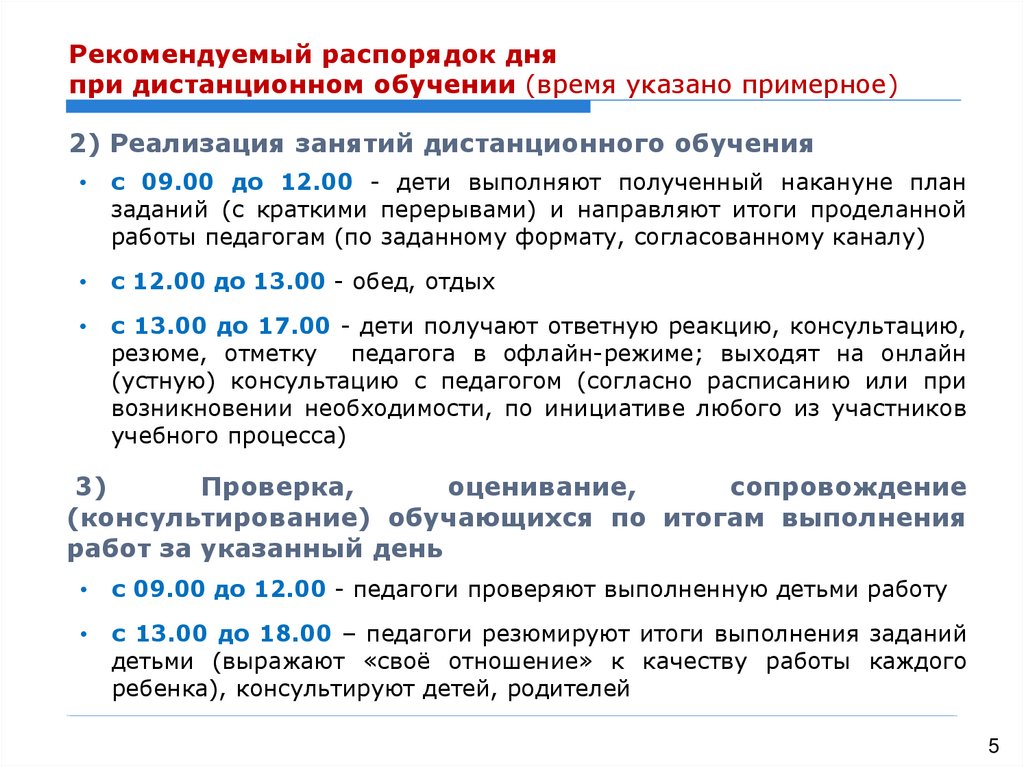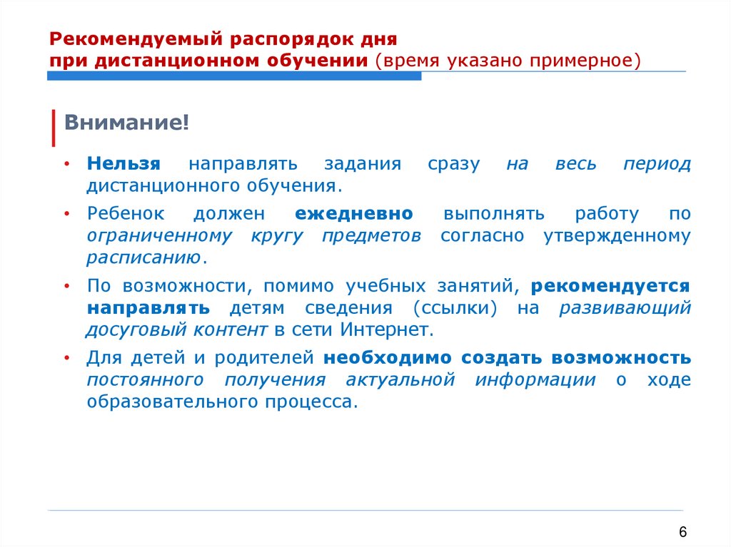 Рекомендуемый распорядок дняпри дистанционном обучении (время указано примерное)