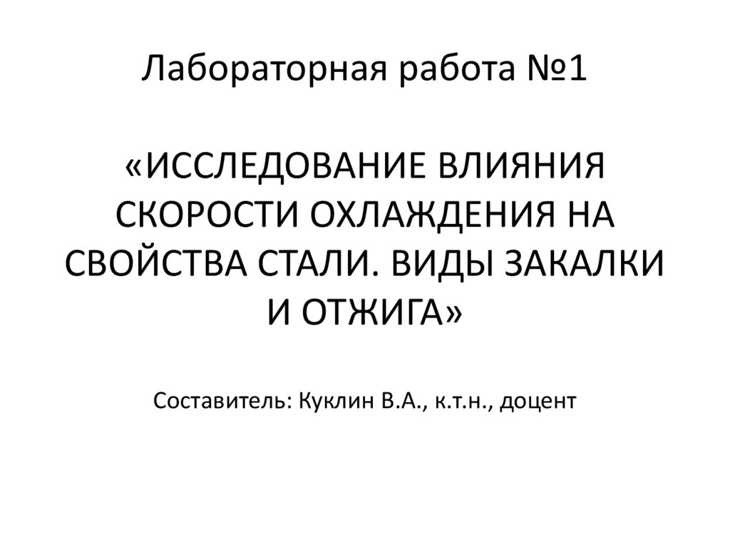 1. Лабораторная работа №1 «ИССЛЕДОВАНИЕ ВЛИЯНИЯ СКОРОСТИ ОХЛАЖДЕНИЯ НА СВОЙСТВА СТАЛИ. ВИДЫ ЗАКАЛКИ И ОТЖИГА» Составитель: Куклин