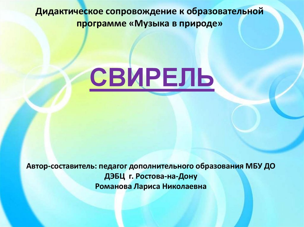 Дидактическое сопровождение к образовательнойпрограмме «Музыка в природе»