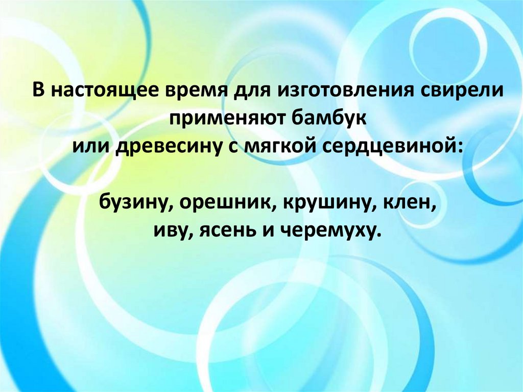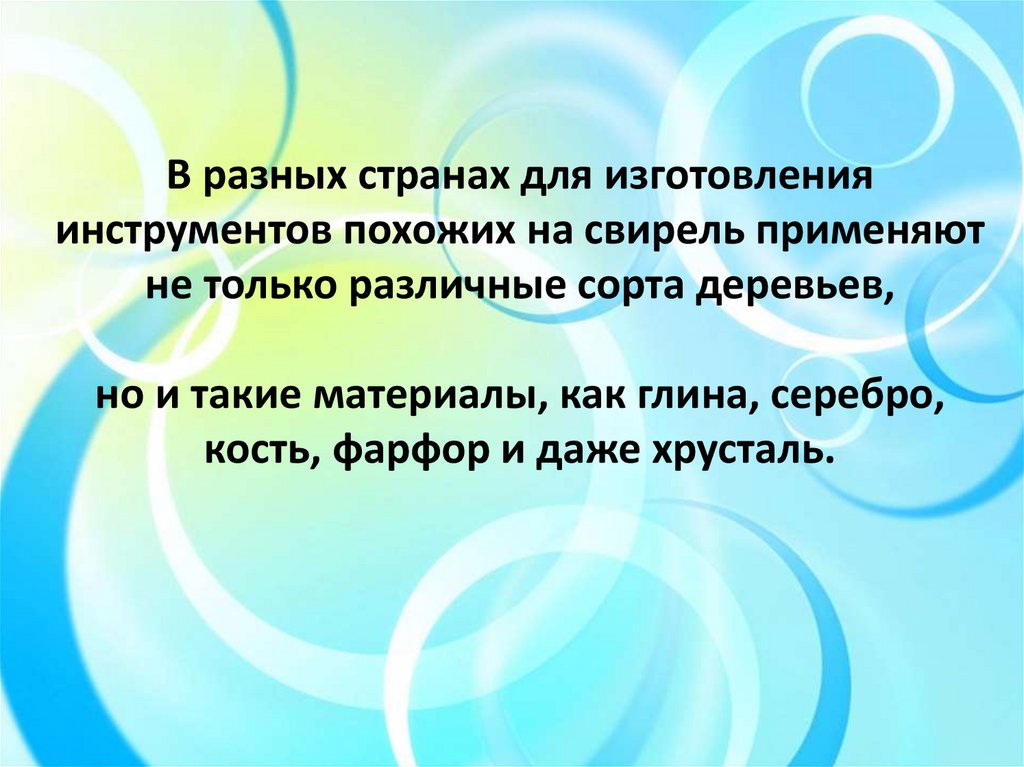 В разных странах для изготовленияинструментов похожих на свирель применяют