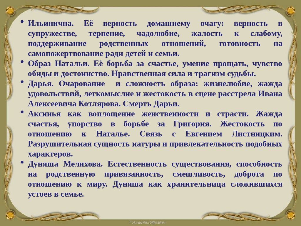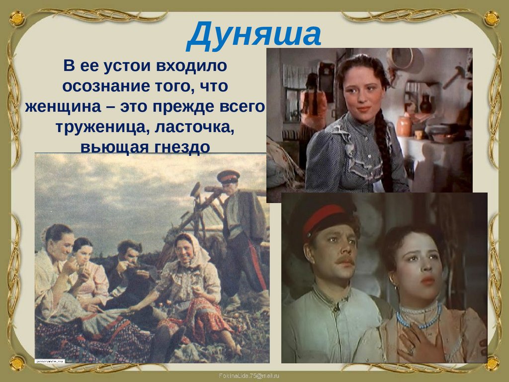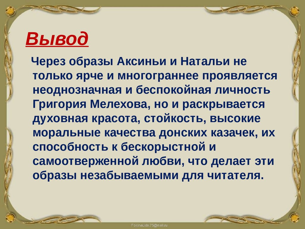 ВыводЧерез образы Аксиньи и Натальи не