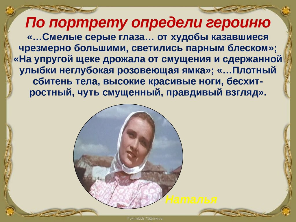 По портрету определи героиню«…Смелые серые глаза… от худобы казавшиеся