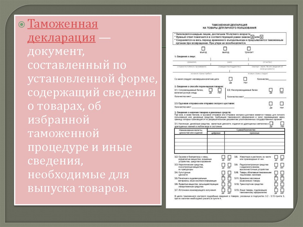 Обеспечение таможенных органовнеобходимыми для таможенных целей