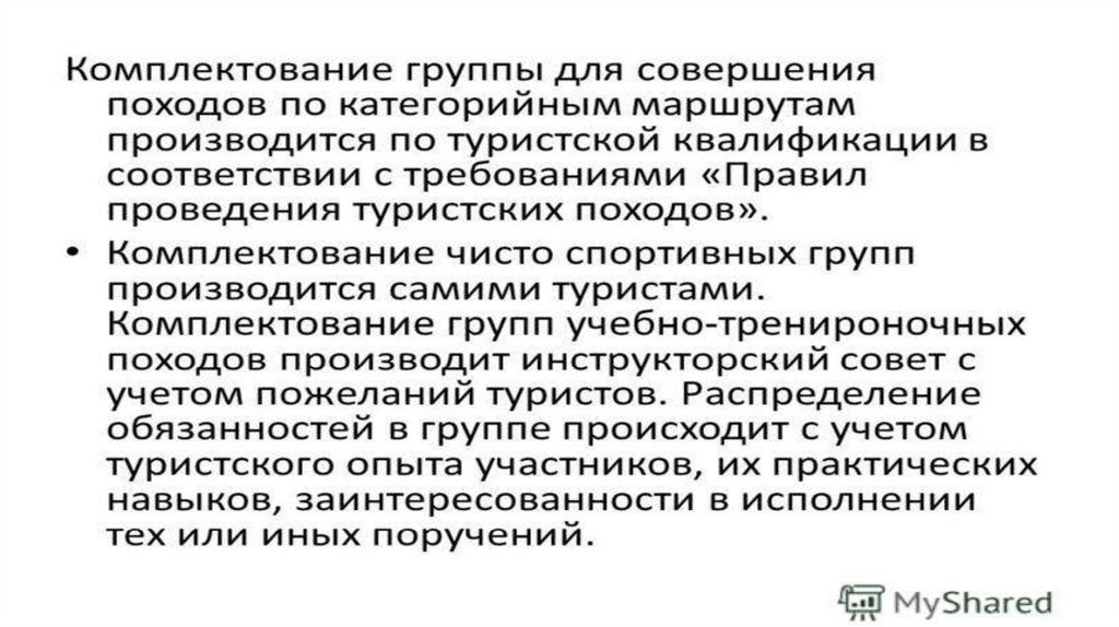 Формирование туристической группы для участия в туристическо - спортивном походе
