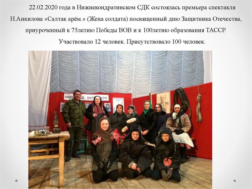 22.02.2020 года в Нижнекондратинском СДК состоялась премьера спектакля