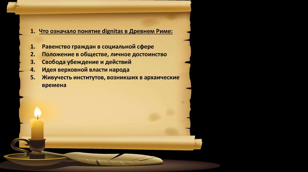 1. Что означало понятие dignitas в Древнем Риме:1.