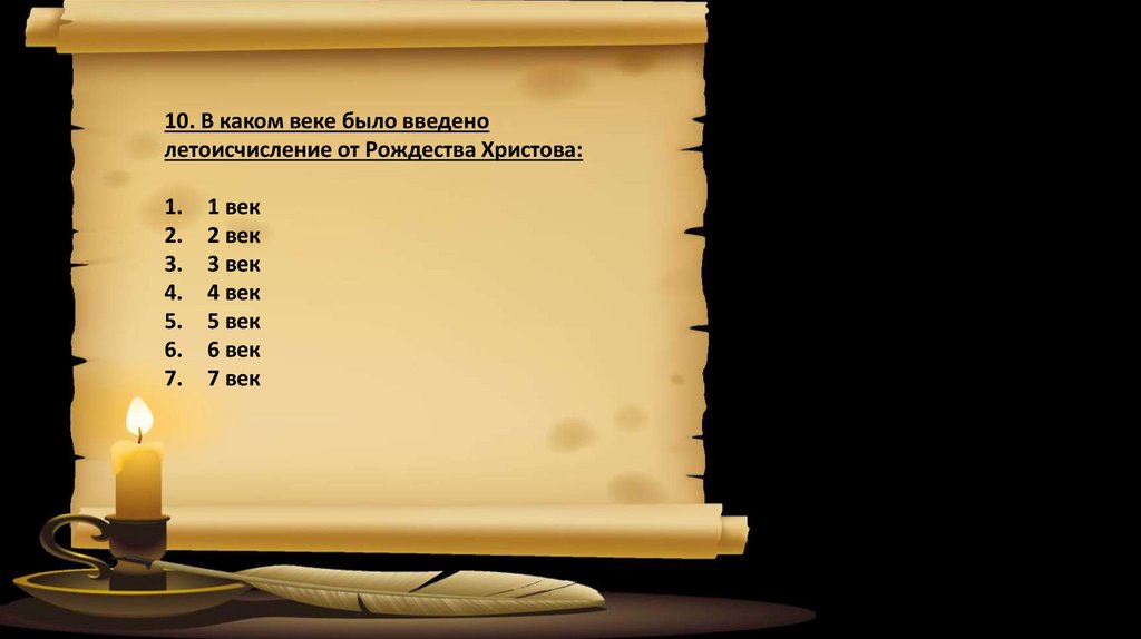 10. В каком веке было введенолетоисчисление от Рождества Христова:
