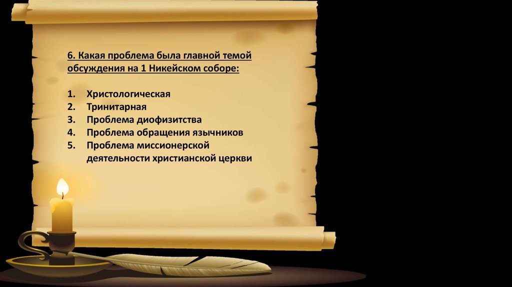 6. Какая проблема была главной темойобсуждения на 1 Никейском соборе:
