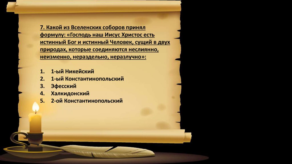 7. Какой из Вселенских соборов принялформулу: «Господь наш Иисус Христос есть